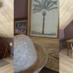 Chambre double duplex, avec au rez-de-chaussée 1 lit en 160X200, salle de douche et WC séparés. À l’étage, vous pourrez profiter d’un espace salon.